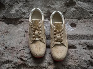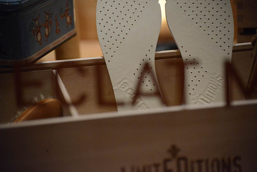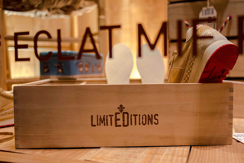 Las zapatillas irán acompañadas de un packaging de madera diseñado para la ocasión, unas hormas de madera, un kit de cuidado de piel de la prestigiosa marca francesa Saphir, una bolsa de piel con distintos cordones y unas plantillas alternativas.