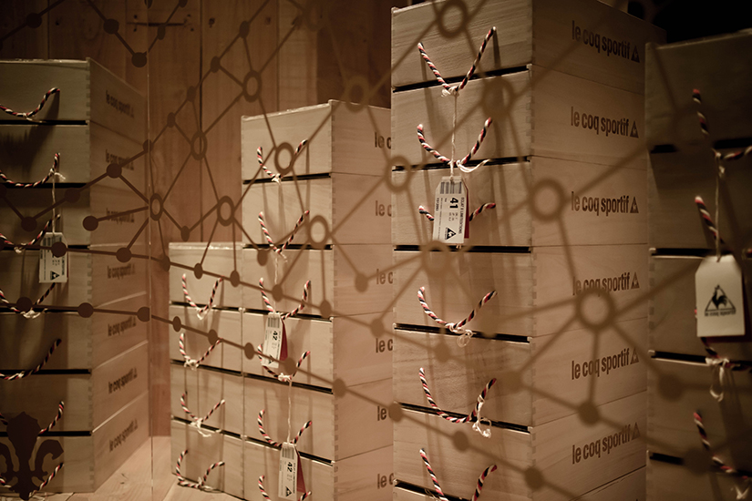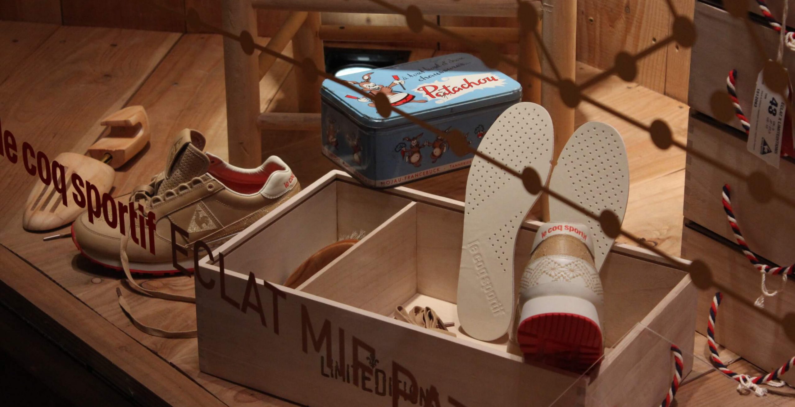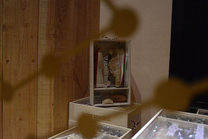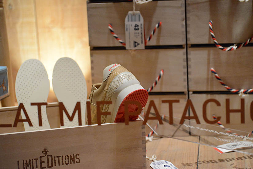 Todos estos detalles representan la unión catalano-francesa entre la tienda barcelonesa y Le Coq Sportif, la marca de calzado deportivo por excelencia del país galo.
