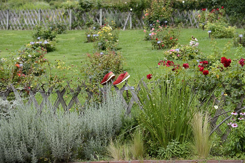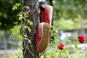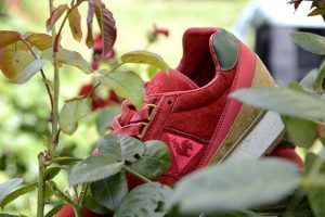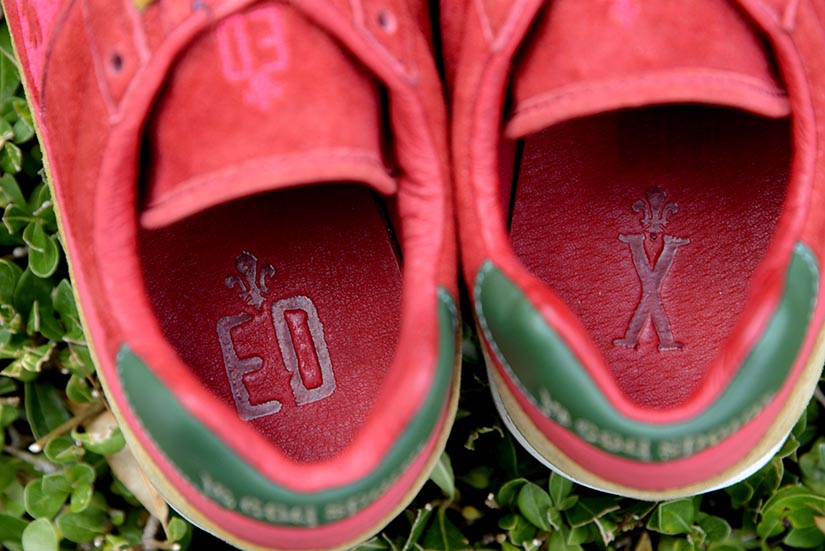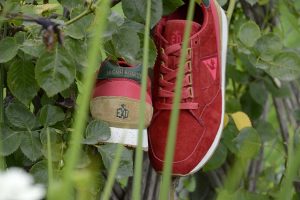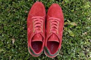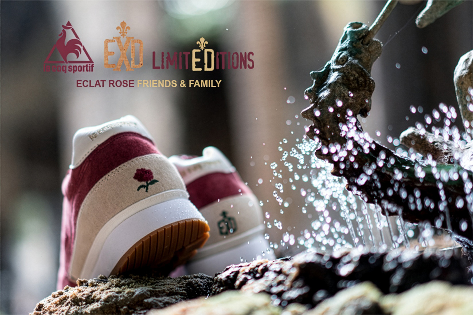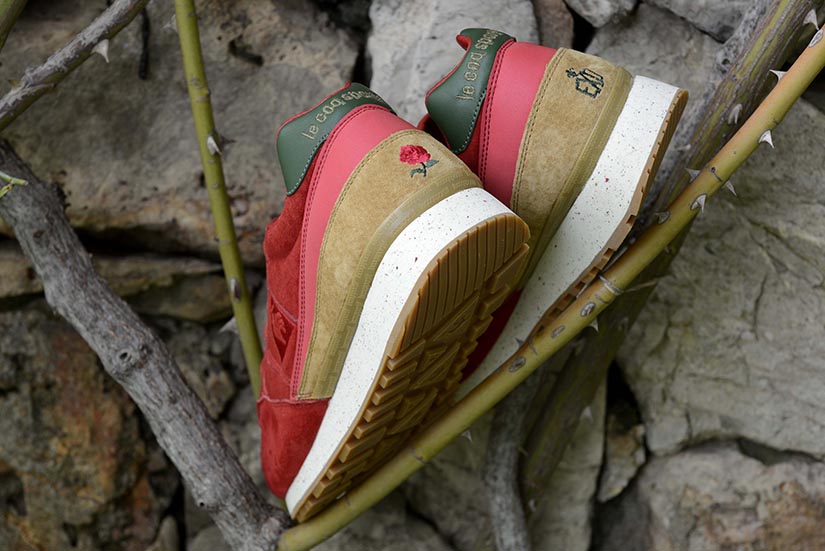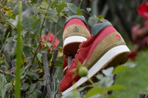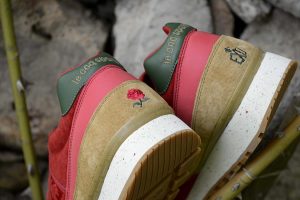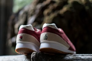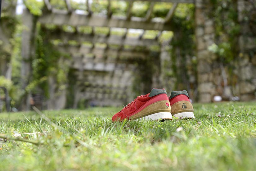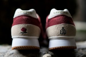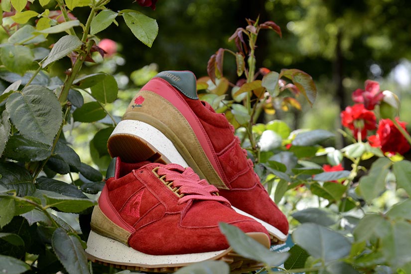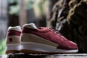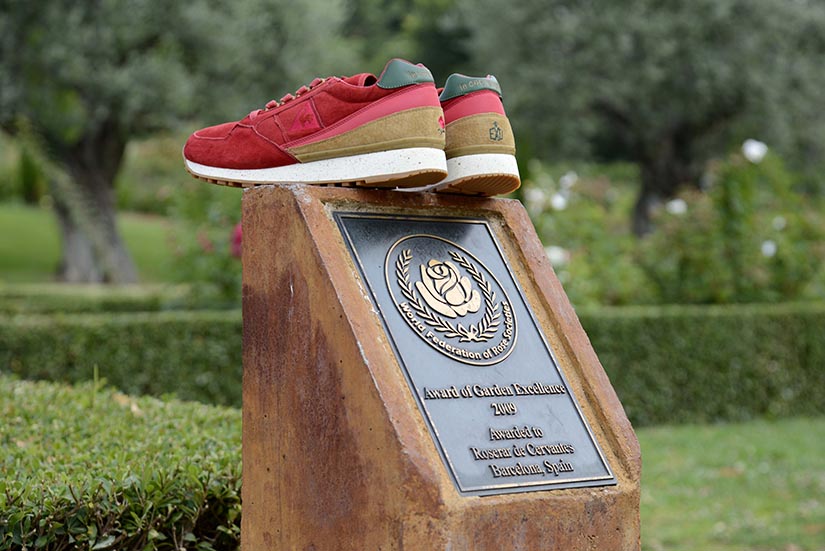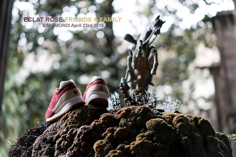 La versión Friends & Family se plantea como una edición limitada que da continuidad al proyecto original, reforzando su vínculo con la Diada de Sant Jordi desde una aproximación más definida. Construida en nubuck premium impermeable, la superficie introduce un sutil efecto que remite al rocío sobre los pétalos de la rosa, trasladando el concepto a una dimensión más táctil. El conjunto se resuelve en un tono burdeos profundo, incorporando detalles como la rosa bordada en el talón y el logotipo en verde, mientras que el packaging, presentado en una caja de madera numerada, refuerza el carácter exclusivo de la pieza dentro de una edición concebida para un entorno cercano.