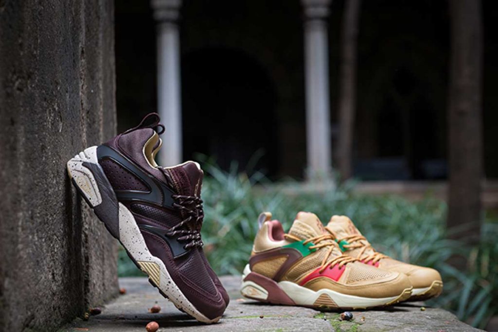 La tienda barcelonesa, que cumple 10 años, ha presentado dos versiones muy especiales de las míticas Puma Blaze of Glory inspiradas en la fiesta catalana de La Castanyada. Hace algunos días os hablamos de la titulada «Panellets«, y hoy le toca el turno a la versión «Chestnuts» (traducido al castellano, castañas). Ambos alimentos identifican esta fiesta tan arraigada.