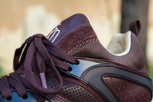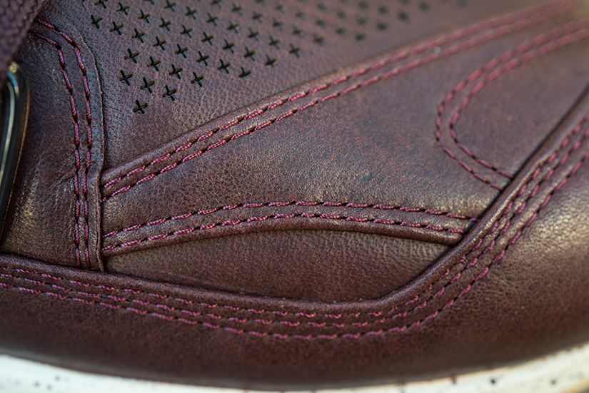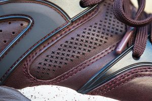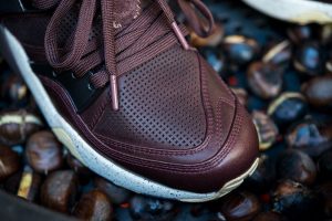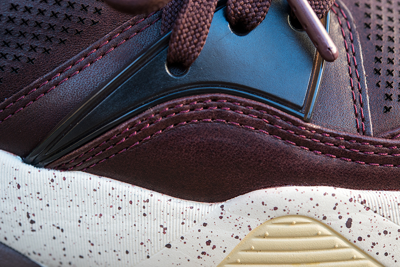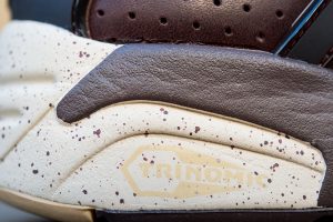 Estas especiales Blaze of Glory «Castañas» se caracterizan por una cuidada selección de materiales, donde una muy interesante piel encerada ocupa el protagonismo, en combinación con nylons y otros detalles en TPU. Como suele ser habitual en este modelo, una mediasuela moldeada con tecnología Trinomic termina el diseño, que se ha chispeado con motas a tono del conjunto.