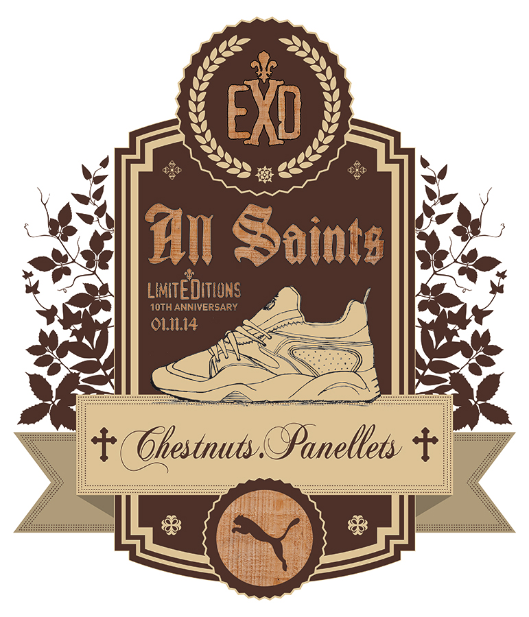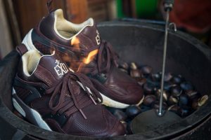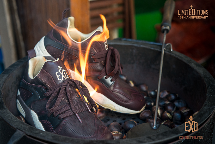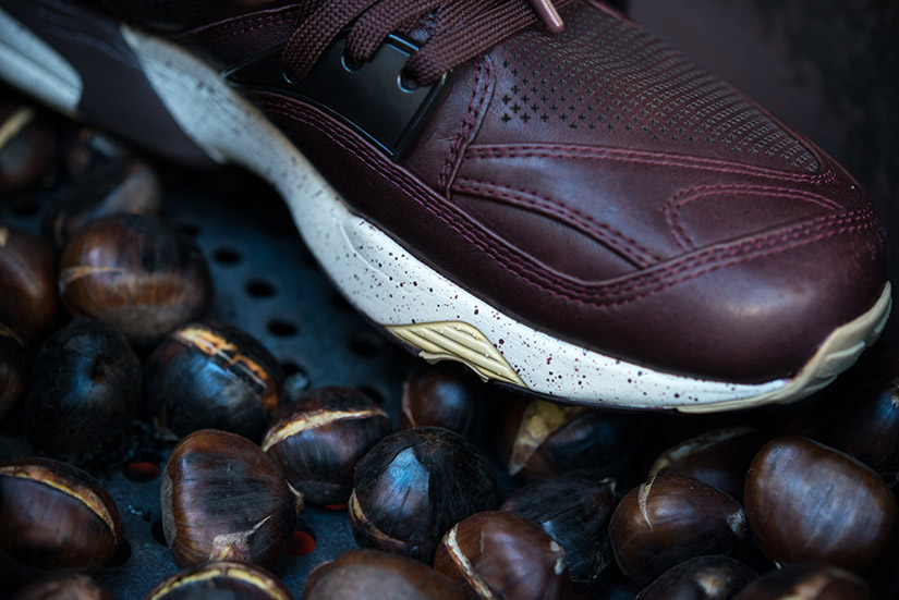 La tienda barcelonesa, que cumple 10 años, ha presentado dos versiones muy especiales de las míticas Puma Blaze of Glory inspiradas en la fiesta catalana de La Castanyada. Hace algunos días os hablamos de la titulada «Panellets«, y hoy le toca el turno a la versión «Chestnuts» (traducido al castellano, castañas). Ambos alimentos identifican esta fiesta tan arraigada.
